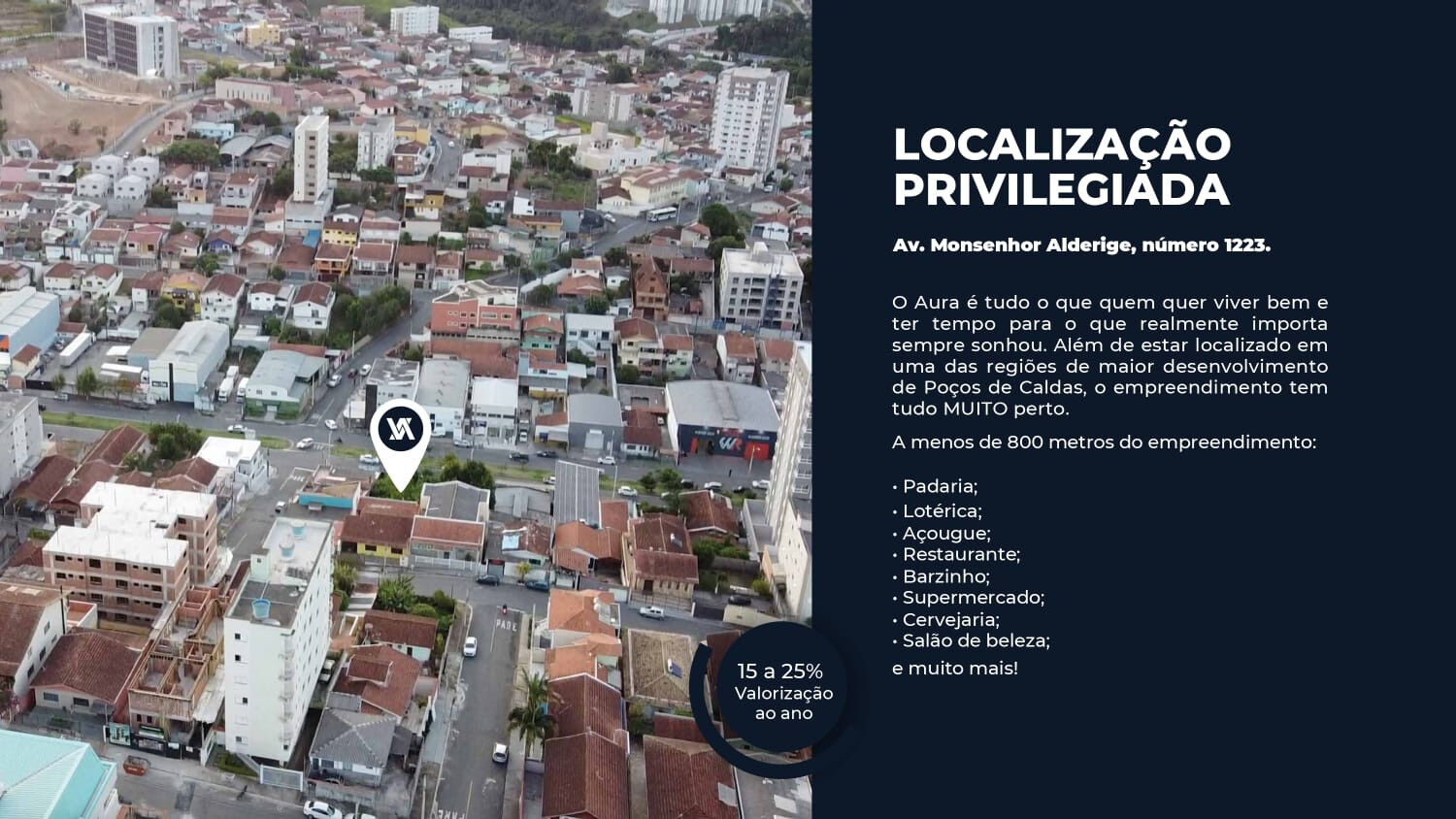 Apartamento localizado no 9º andar, de frente para a Avenida Monsenhor Alderige.